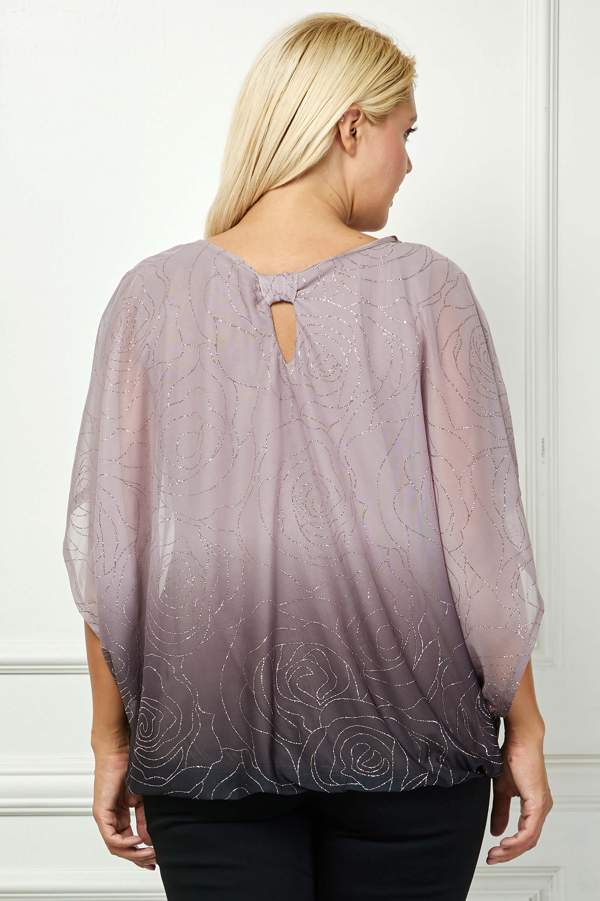 Elbow Sleeve Poncho Knot Back Bubble Blouse - Purple - Plus