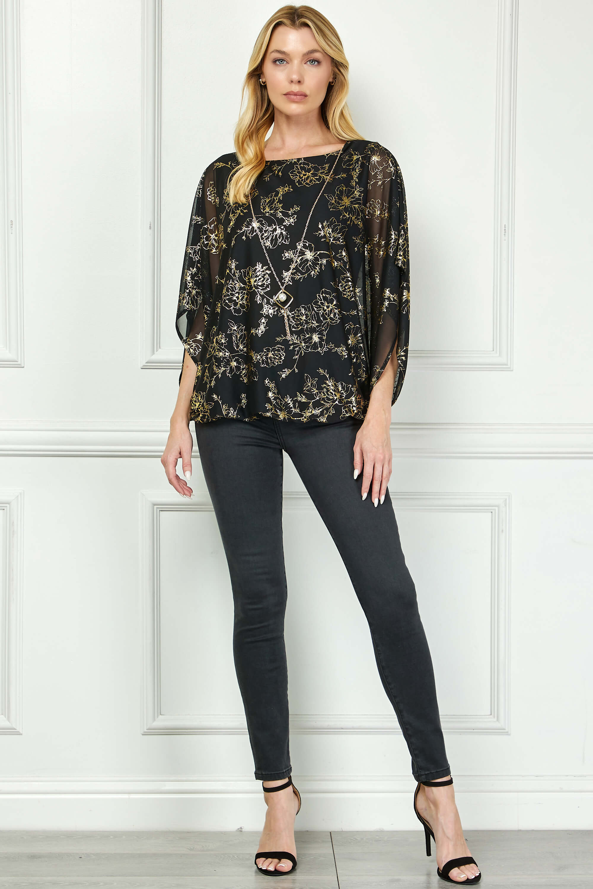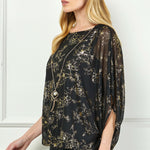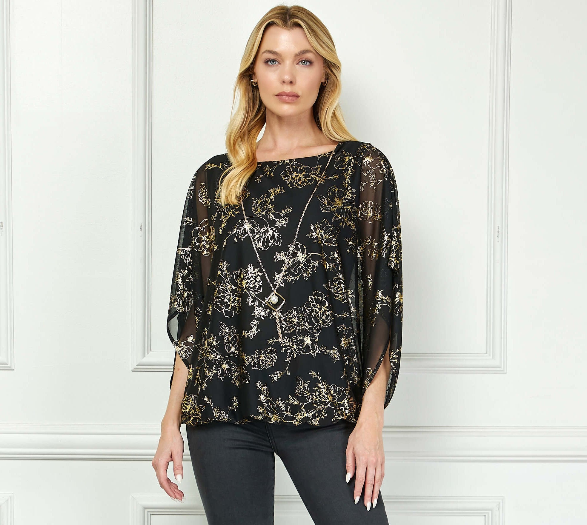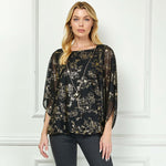 Chic and effortlessly elegant, this blouse features a flowing silhouette that flatters every figure. The poncho-style overlay drapes beautifully, offering soft movement and a sophisticated finish that transitions seamlessly from day to night.
