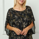 Chic and effortlessly elegant, this blouse features a flowing silhouette that flatters every figure. The poncho-style overlay drapes beautifully, offering soft movement and a sophisticated finish that transitions seamlessly from day to night.