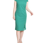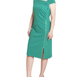 Turn heads in this sleek sheath dress, featuring a flattering square neckline and an edgy front zip slit. Perfect for power moves and stylish nights out.