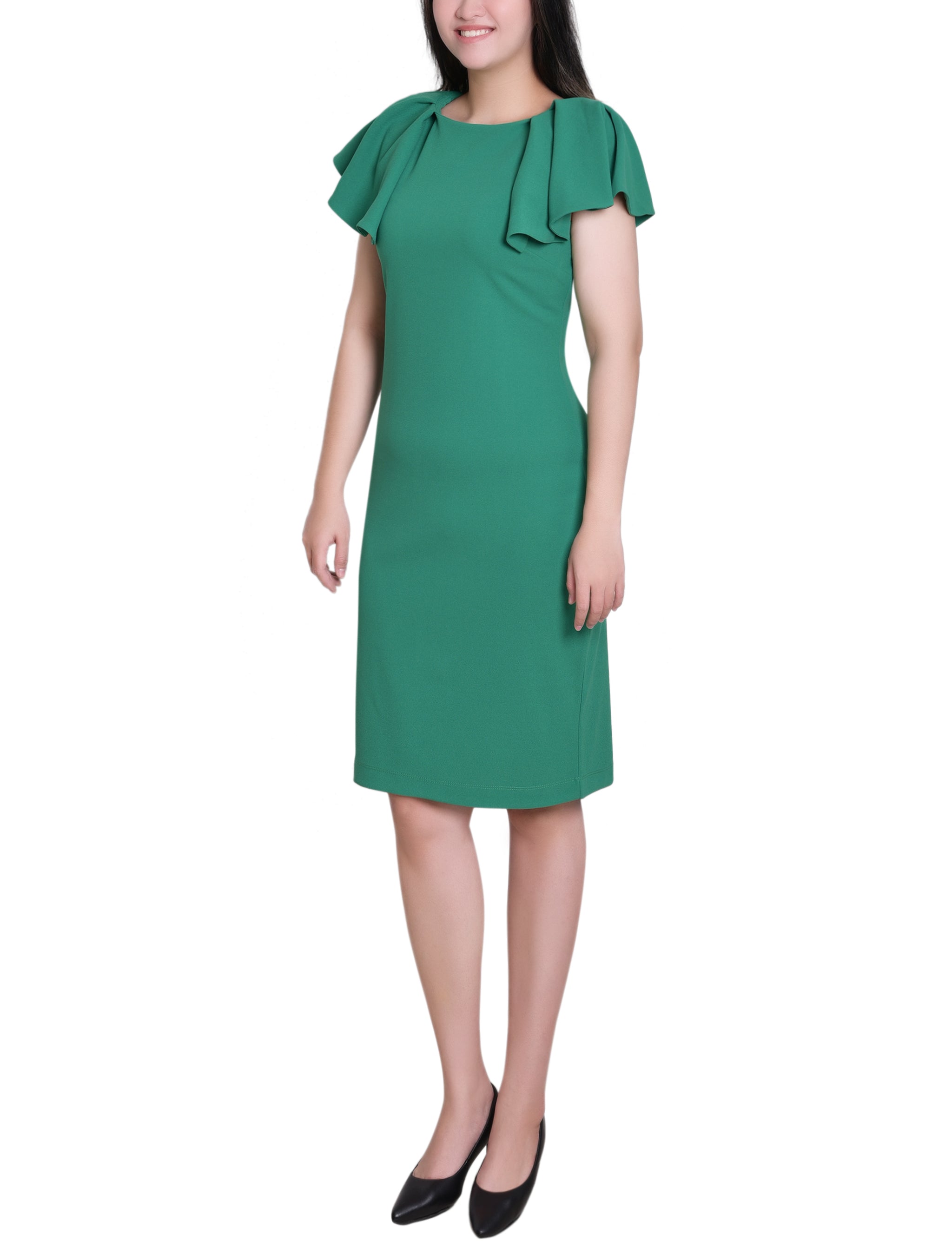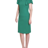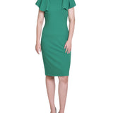 Add a pop of style to your wardrobe with thissheath dress. Featuring soft flutter sleeves and a flattering, streamlined silhouette, it’s perfect for both the office and special occasions.