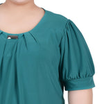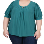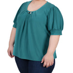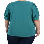 Emerald Short Sleeve Balloon Sleeve Top With Hardware - Plus