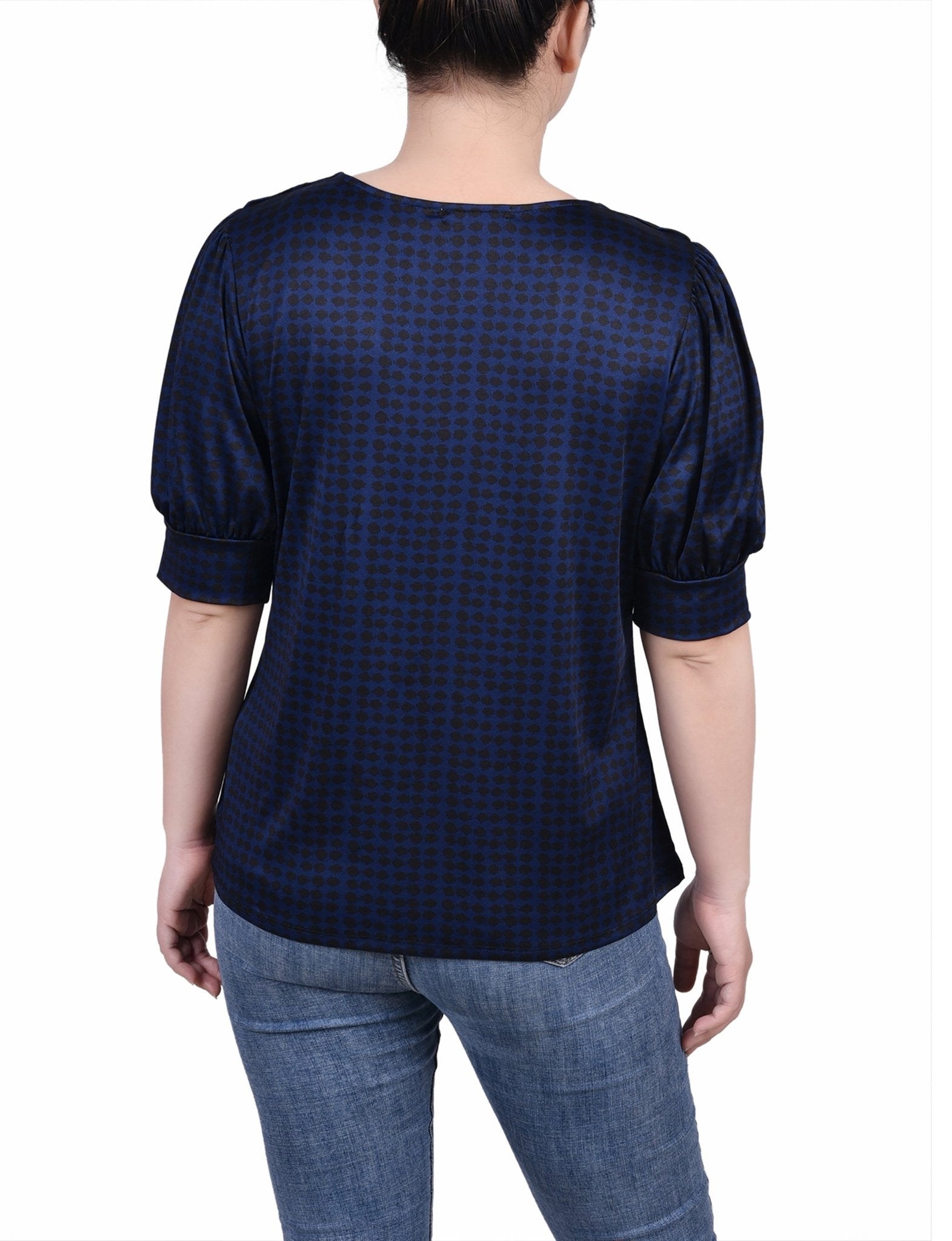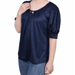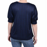 Estate Blue Snowpop Short Sleeve Balloon Sleeve Top - Petite