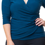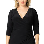 Show off your killer curves in our Femme Fatale Plus Size Faux Wrap Top! An easy pullover design, draped waist, and fitted 3/4 sleeves make this plus size top a closet must-have. This faux wrap blouse is available exclusively in women's plus sizes.