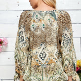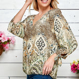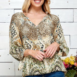 Figueroa & Flower 3/4 Sleeve Animal Print Peasant Blouse