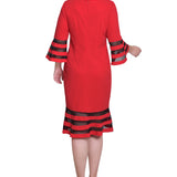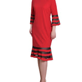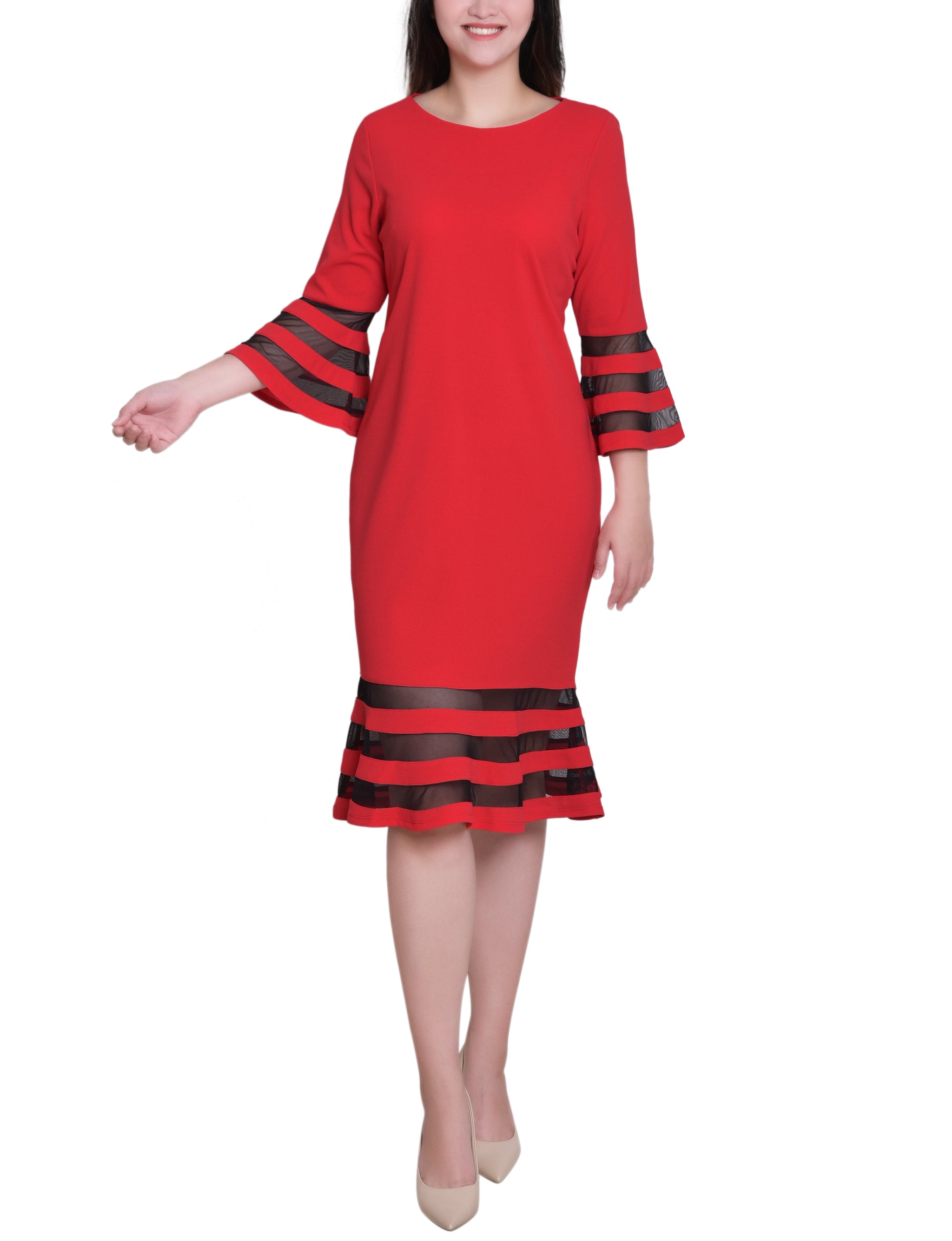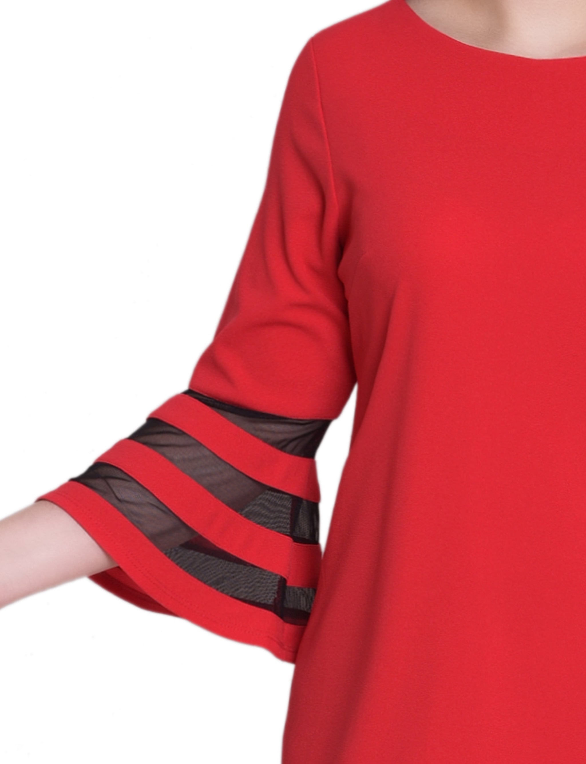 A sleek look that can easily transition from day to night. The sophisticated silhouette is made with comfortable scuba crepe fabric and mesh contrast, for an elevated style.