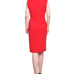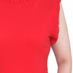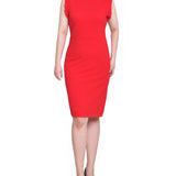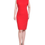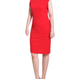 Turn heads in thissheath dress, designed with a sleek, figure-flattering silhouette. Featuring playful ruffled cap sleeves and a clean, polished finish, it’s the perfect choice for both workdays and special occasions.
