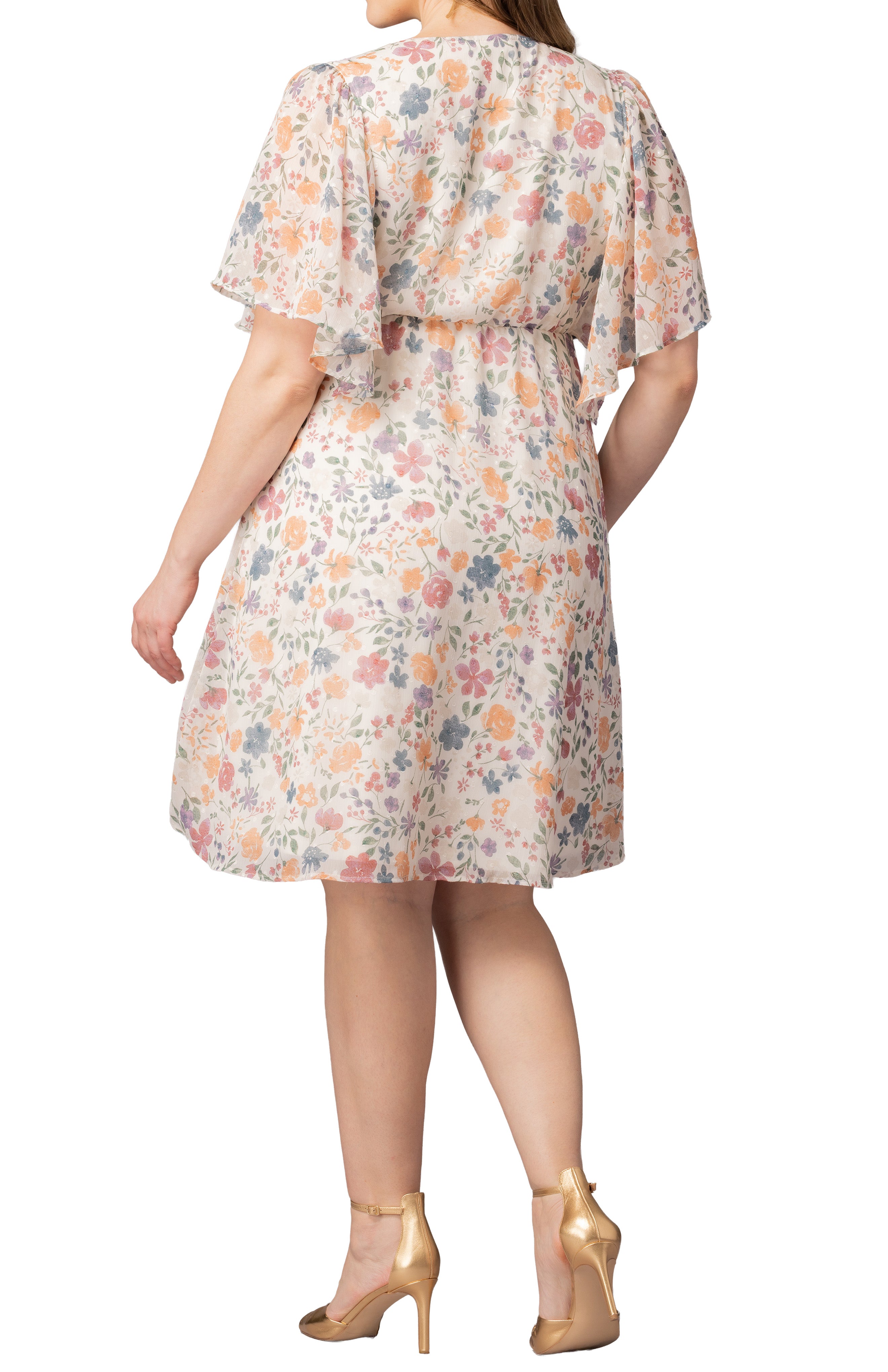 Florence Flutter Sleeve Dress - Pale Blossoms - Plus