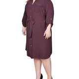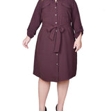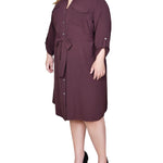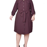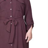 You'll always be in style with this classic shirt-dress with its full button front and self belt.