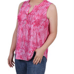 Fuschia Swirlbreeze Sleeveless Jacquard Y Neck Top - Petite – Dressbarn