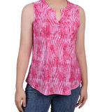 Fuschia Swirlbreeze Sleeveless Jacquard Y Neck Top - Petite