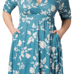 You'll feel beautiful in our retro-inspired Gabriella Ruched Sleeve Midi Dress. This flattering stretch jersey A-line dress is designed with a surplice bodice, 3/4 length sleeves, and pockets. Soft and thick jersey fabric fits beautifully without clinging. Available in women's plus sizes.