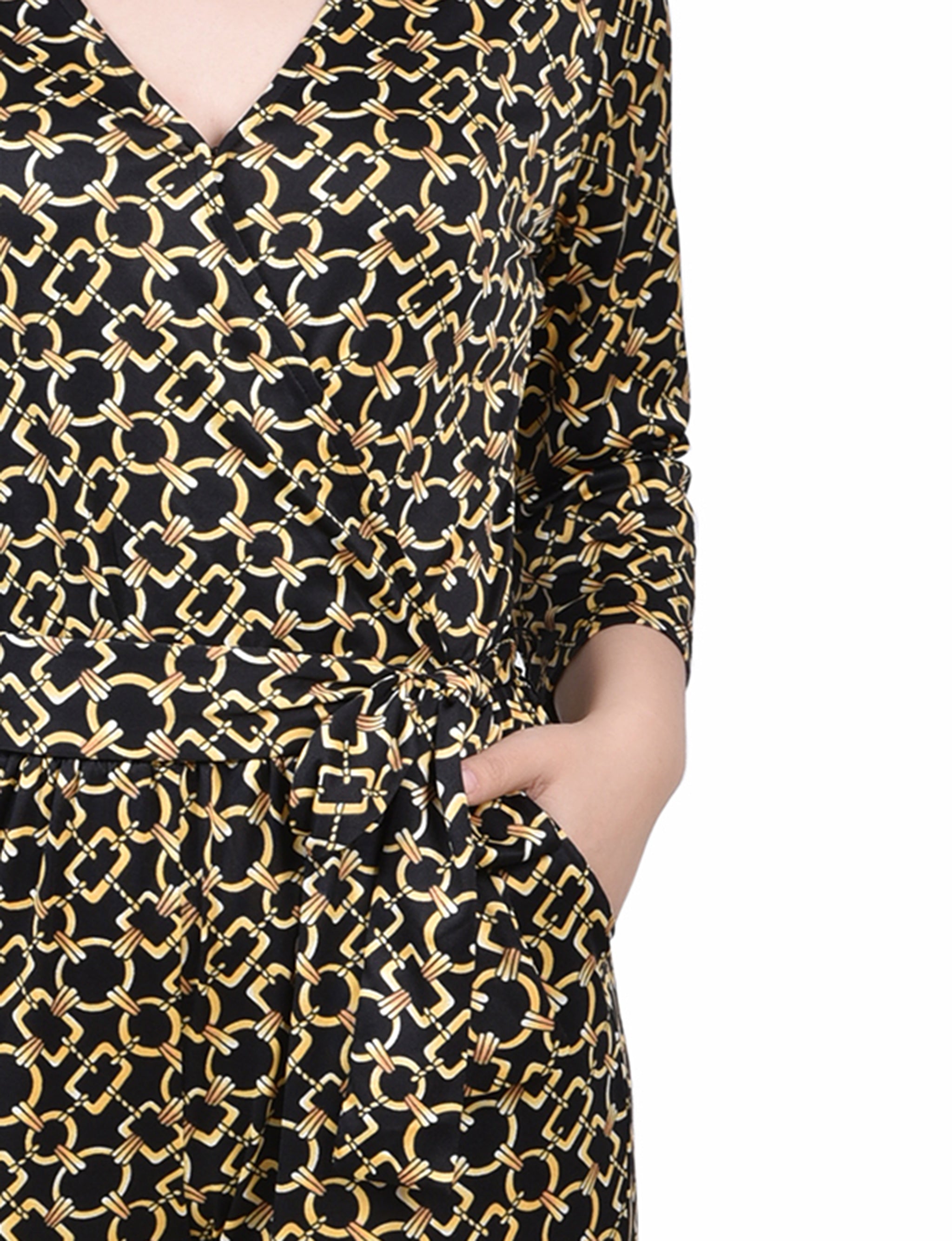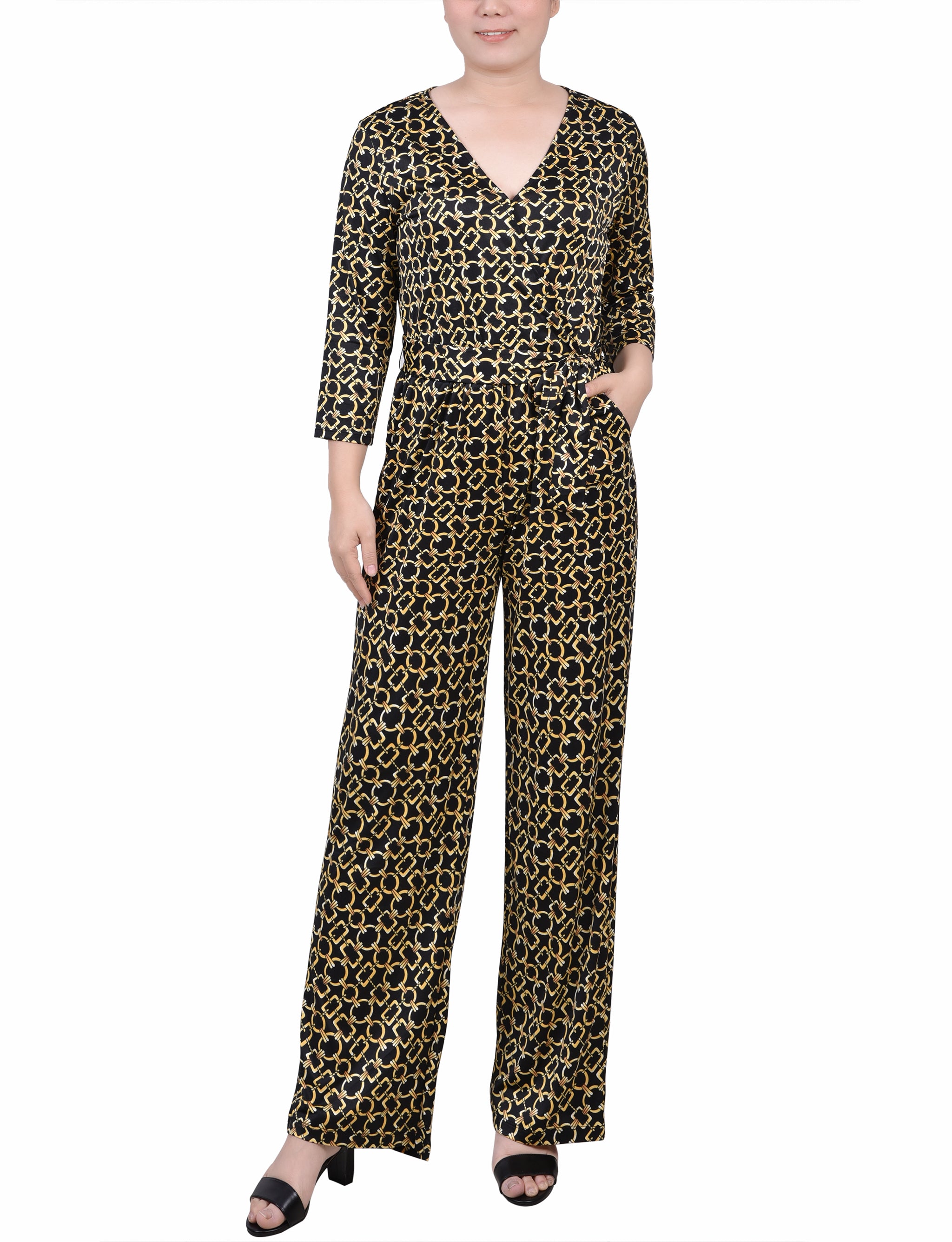 Gold Chain Link 3/4 Sleeve Belted Jumpsuit – Dressbarn