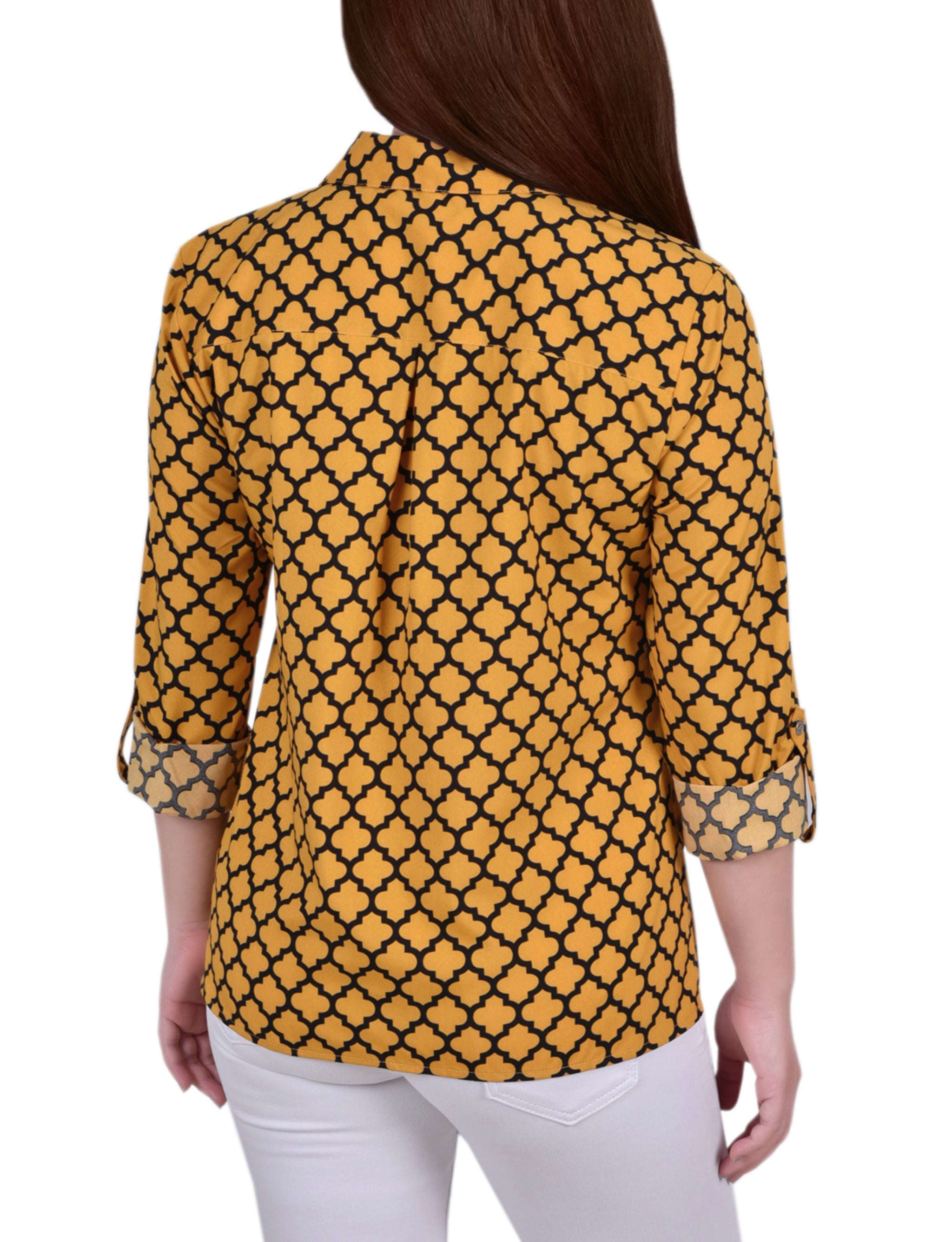 Lots of details make this blouse a must have this season with it's bias cut placket and chest pockets.