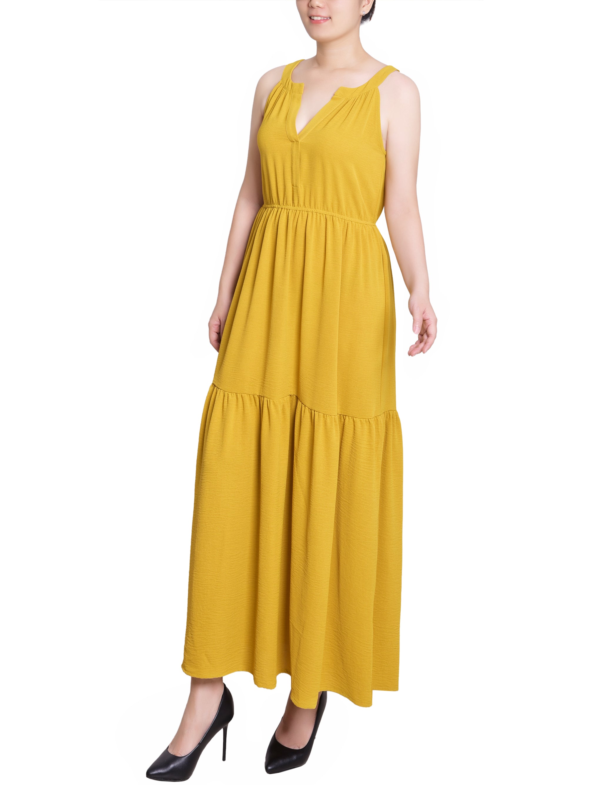 Stay cool and confident in this sleeveless V-neck dress, designed with a flattering elastic waistband and crafted from lightly textured polyester. Its solid color makes it a versatile go-to for everything from weekend brunch to casual office days.