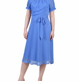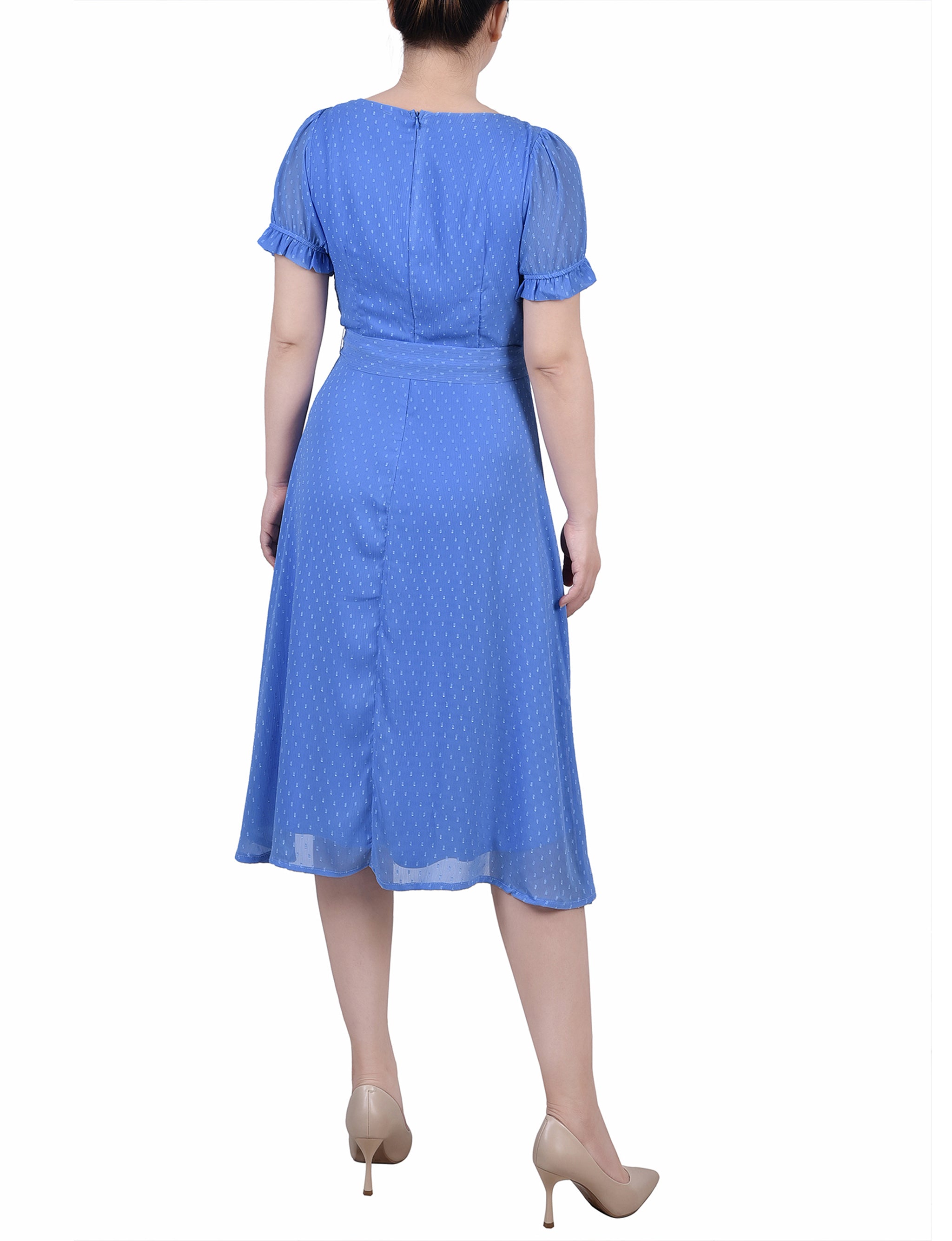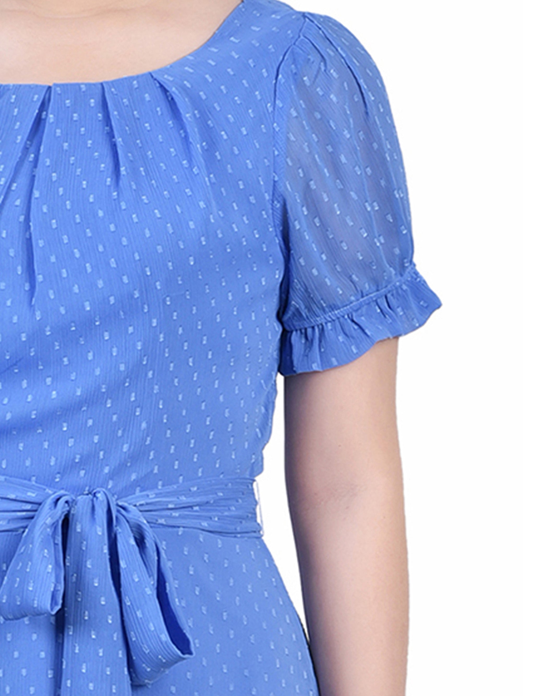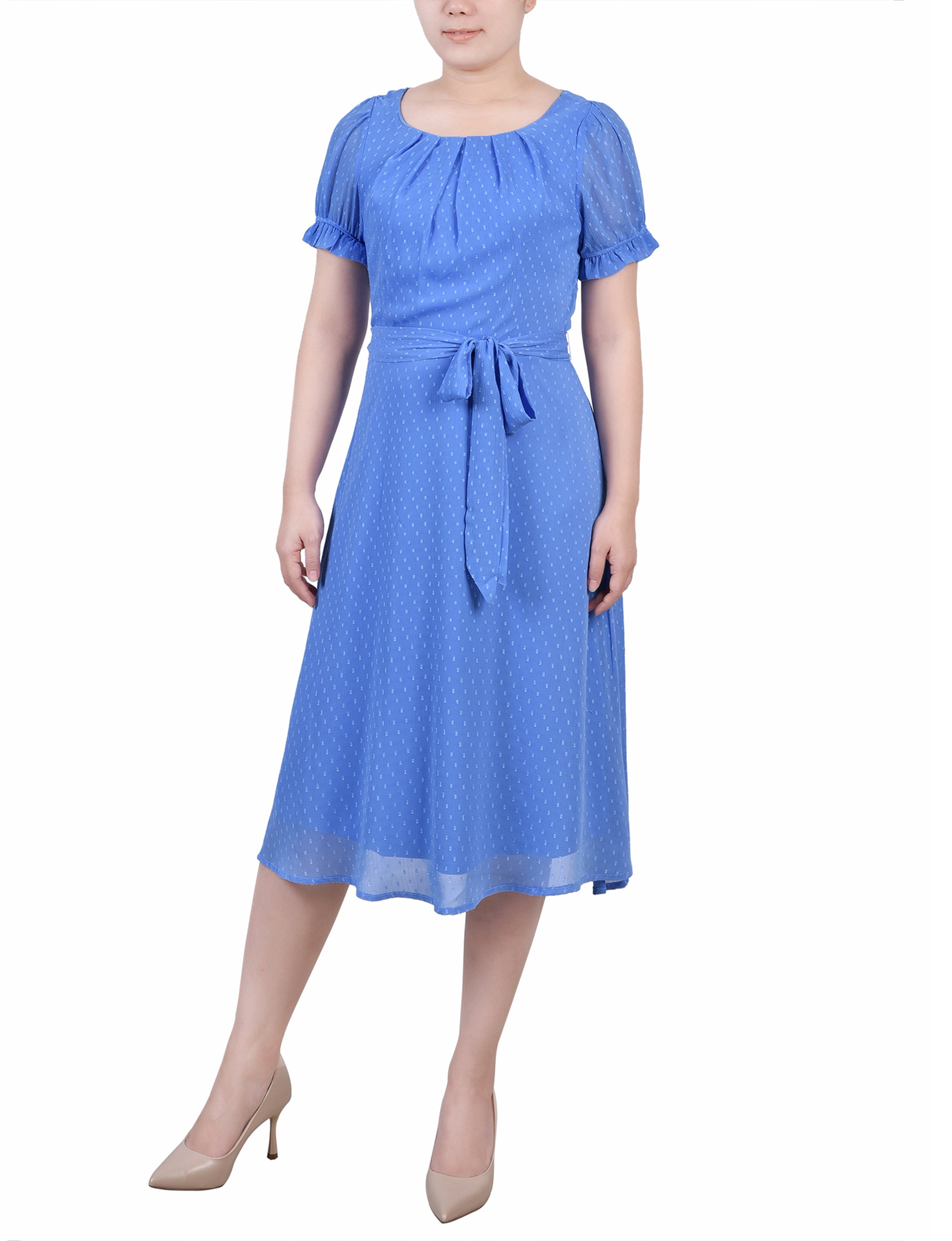Granada Sky Short Sleeve Belted Swiss Dot Dress – Dressbarn