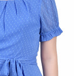 Granada Sky Short Sleeve Belted Swiss Dot Dress