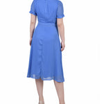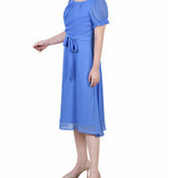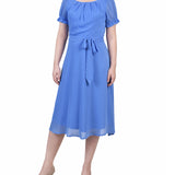 Granada Sky Short Sleeve Belted Swiss Dot Dress - Petite