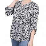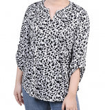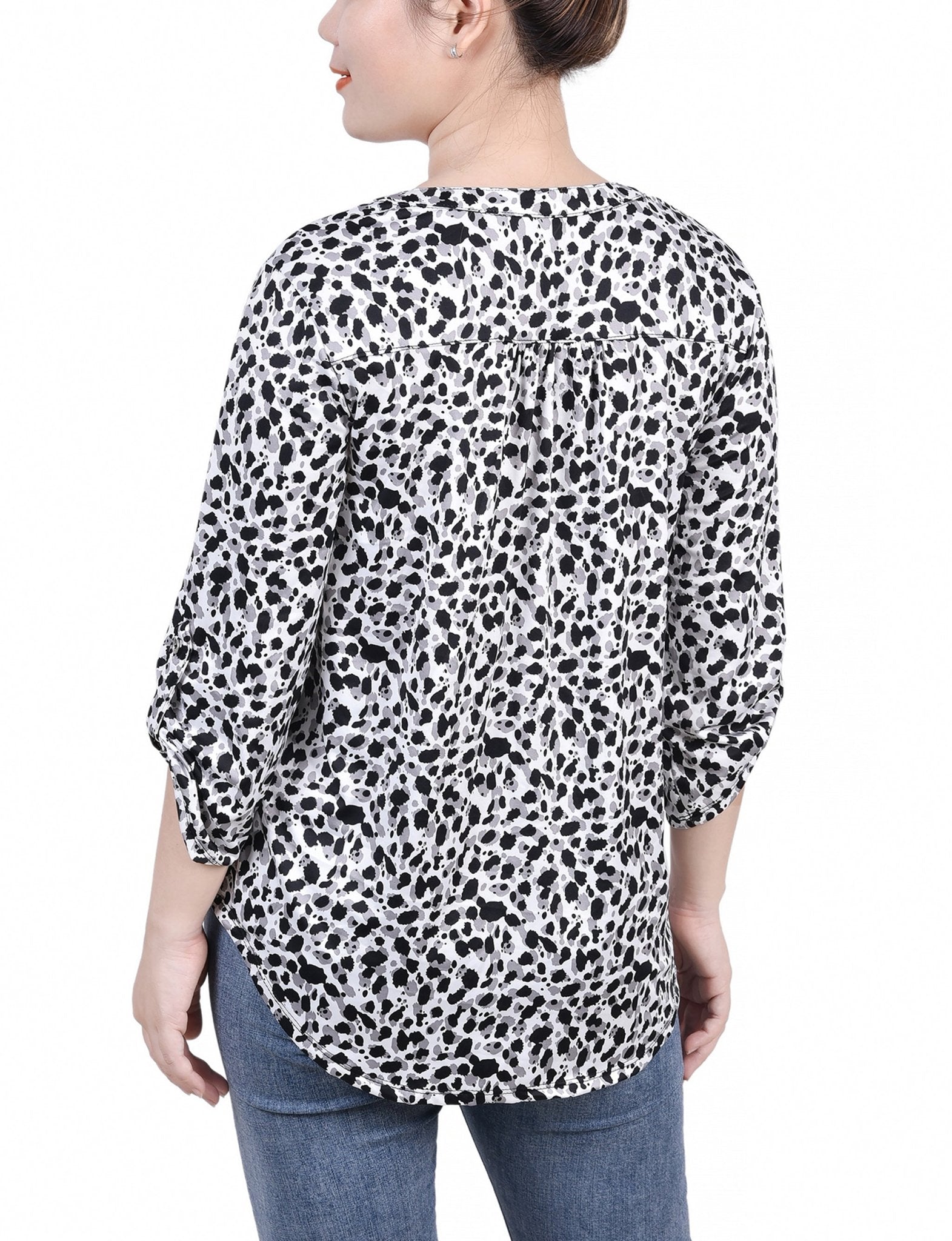 Perfect for the office or a day of errands, this comfortable and cute popover top has a roll tab sleeve and a Y-neckline.