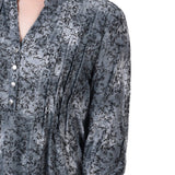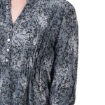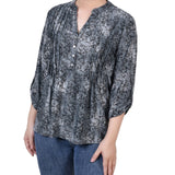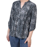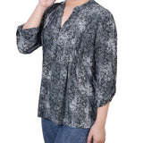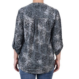Grey Floral 3/4 Sleeve Roll Tab Y Neck Top - Petite - DressbarnBlouses
