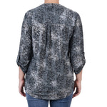 Grey Floral 3/4 Sleeve Roll Tab Y Neck Top - Petite