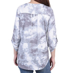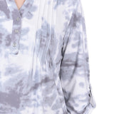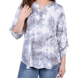 Grey Tiedye 3/4 Bell Sleeve Pleat Front Y Neck Top