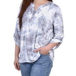 Grey Tiedye 3/4 Bell Sleeve Pleat Front Y Neck Top – Dressbarn