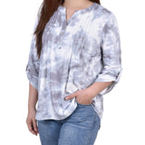 Grey Tiedye 3/4 Bell Sleeve Pleat Front Y Neck Top - DressbarnBlouses