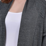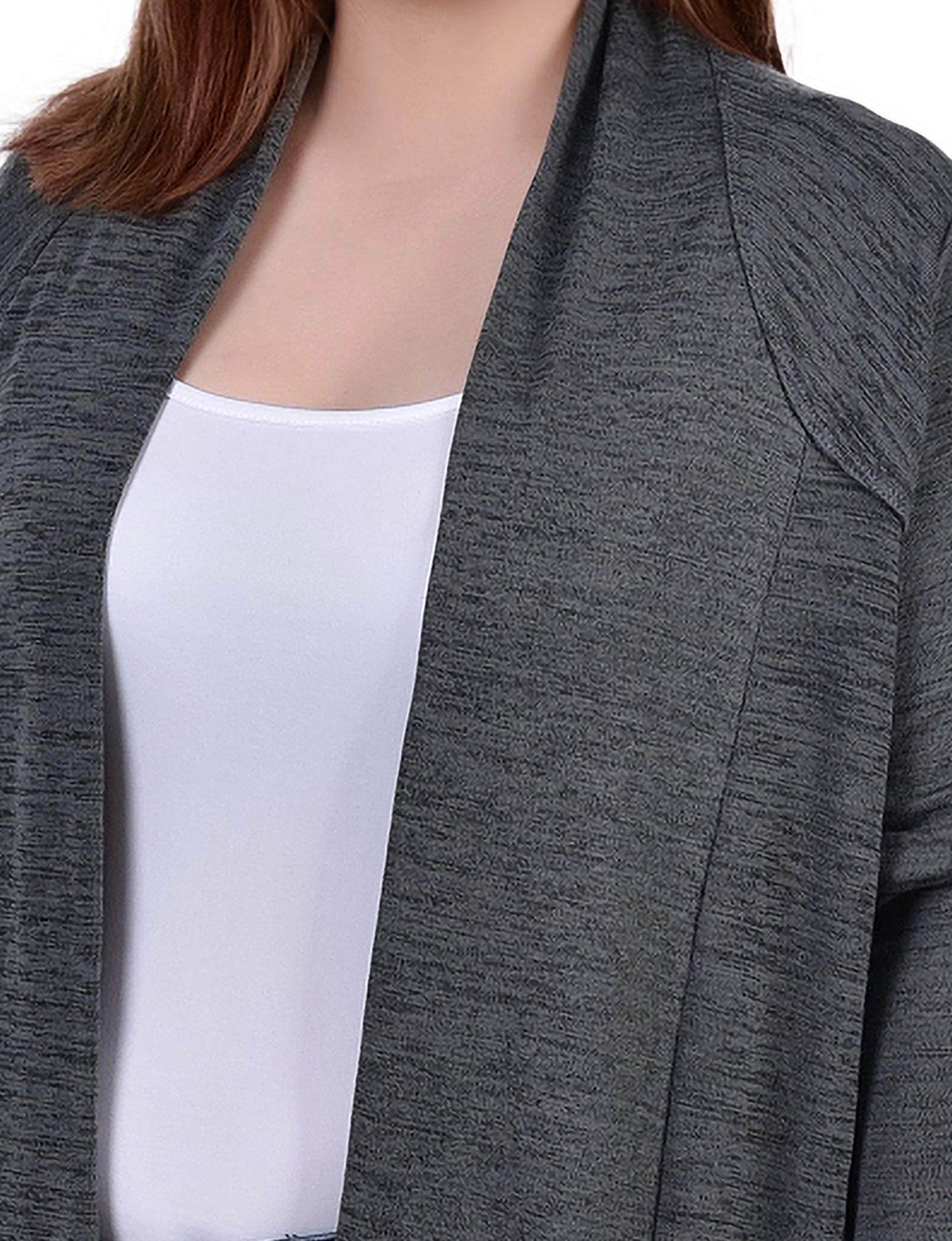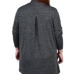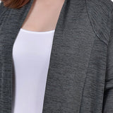 Cozy and comfortable, this cardigan with rouched back details is a perfect layering piece for any outfit.