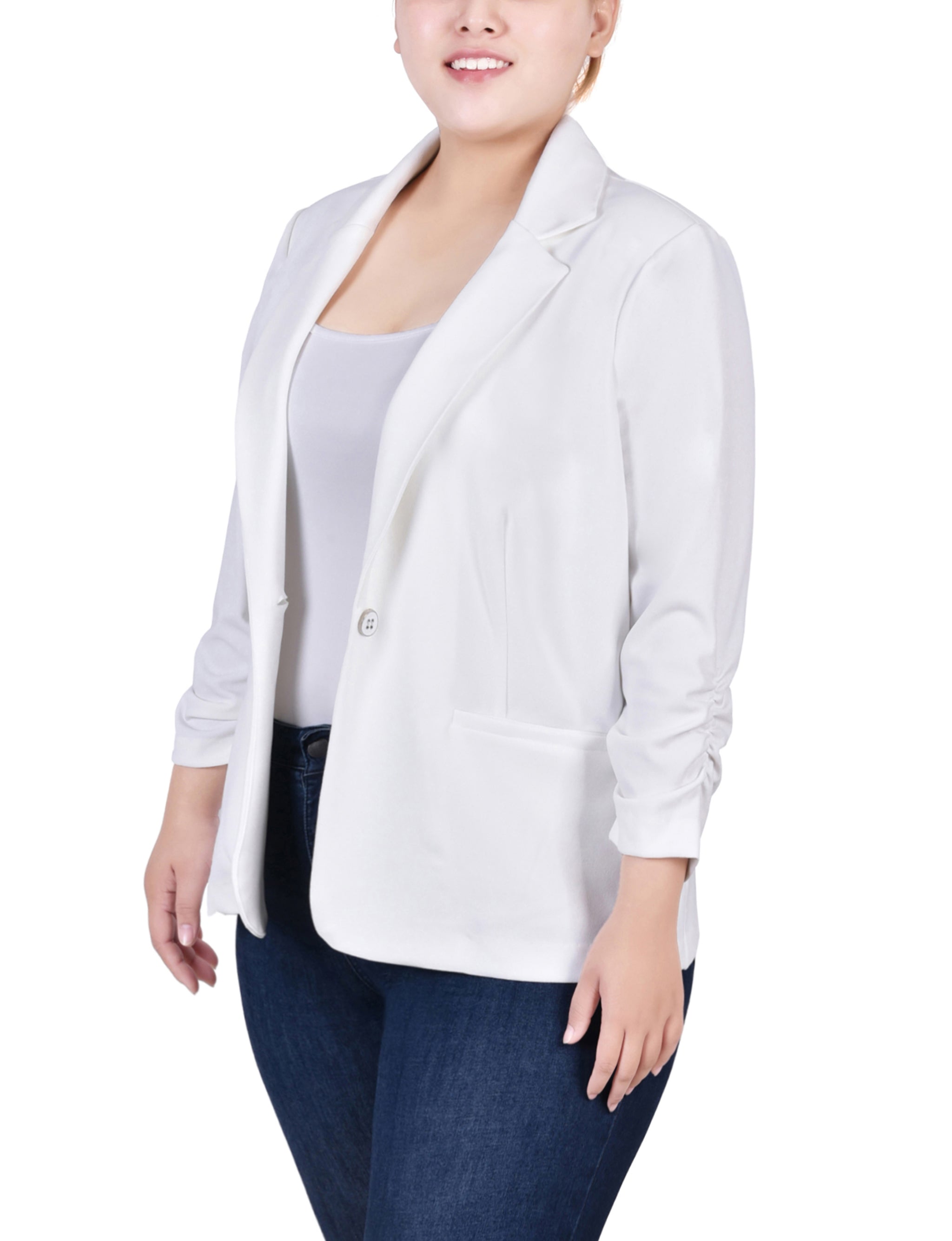 Ivory Long Sleeve Scuba Crepe Jacket - Plus