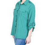Jelly Bean 3/4 Sleeve Roll Tab Blouse