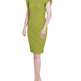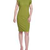 Turn heads in this sleek sheath dress, designed with soft ruffled cap sleeves and a flattering, body-skimming fit. Perfect for workdays or weekend events.