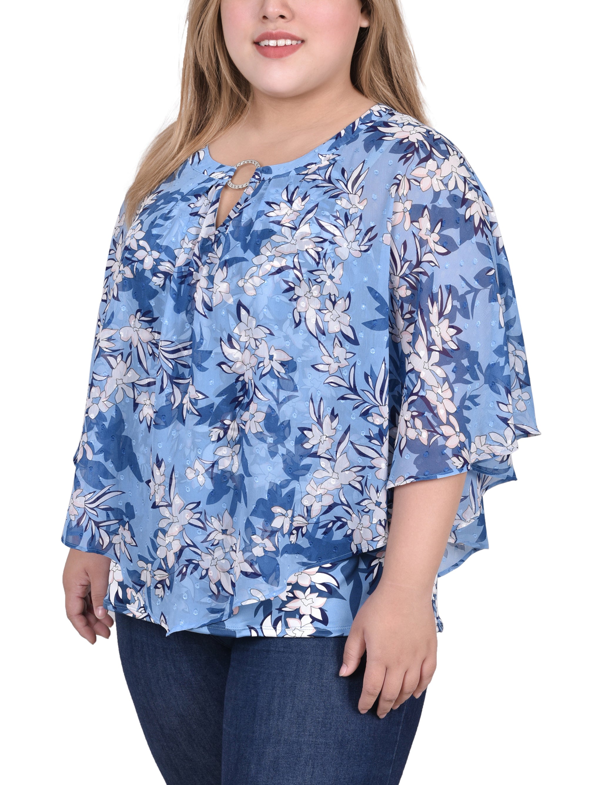 Light Blue White Floral Chiffon Poncho - Plus Size – Dressbarn