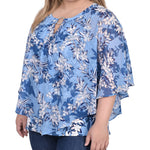 Light Blue White Floral Chiffon Poncho - Plus Size