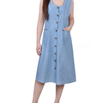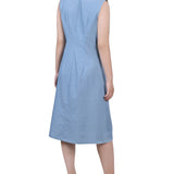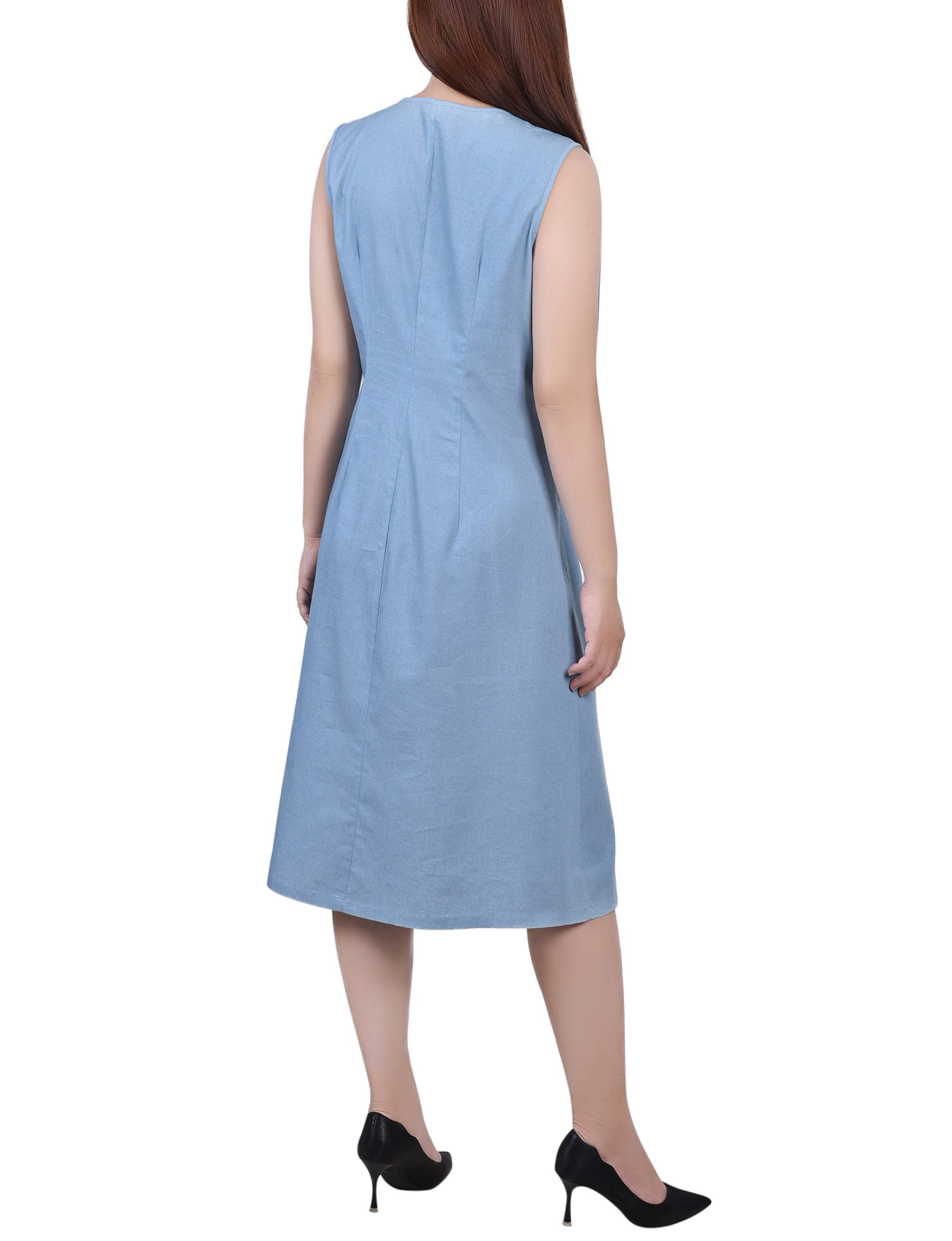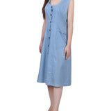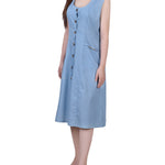 Designed for sunny weekends, this chambray dress features vertical seams and pocket hardware.