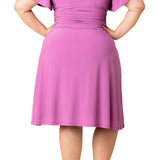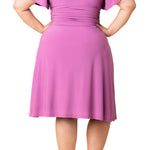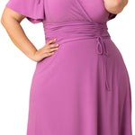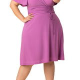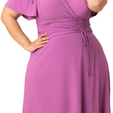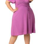 Transition seamlessly from day to night with the Plus Size Jemma Ruched Tie Dress. This elegant knee-length dress features a flattering surplice V neckline and elbow-length flutter sleeves, perfect for work events and dinner dates. Adjustable drawstring tie details at the waistband and shoulders allow for customizable ruching, ensuring a flattering fit that highlights your curves.