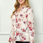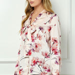 Long Cuff Sleeve Tie Neck Button Blouse in Pink