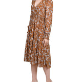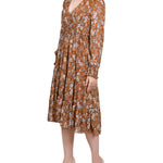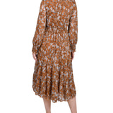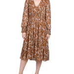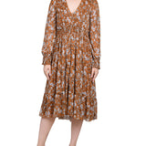 Long Sleeve Clip Dot Chiffon Dress With Smocked Waist and Cuffs - Petite