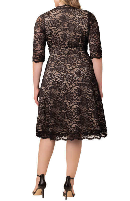 Mademoiselle Lace Cocktail Dress - Black Nude - Plus
