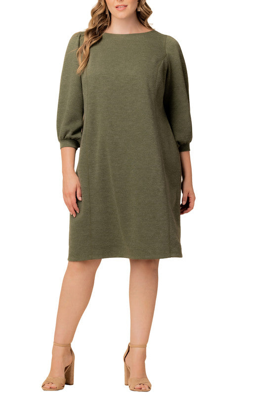 You'll look chic and ready for any destination in our Madison Shift Dress, crafted in a soft knit fabric. This knee-length dress features a boat neckline and 3/4 length blouson sleeves. You’ll look put together for every occasion in your social calendar.