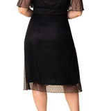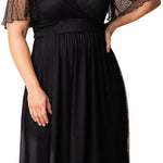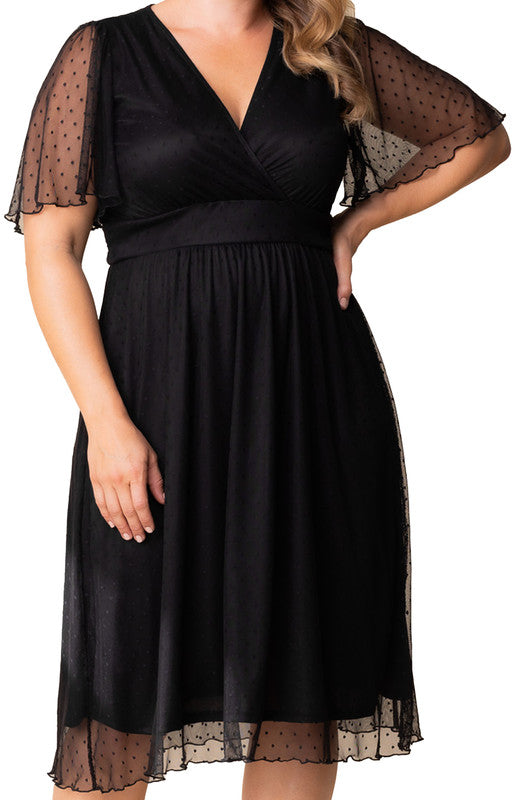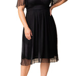 Effortlessly elegant, the Plus Size Margot Mesh Midi Cocktail Dress is a must-have for any occasion. This knee-length A-line dress features a flattering surplice neckline and delicate flutter sleeves for a feminine touch. The elastic waistband enhances your curves while ensuring all-day comfort.