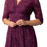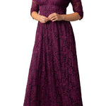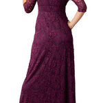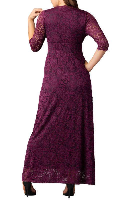 The Maria Lace Evening Gown is a long, formal gown featuring an A-line silhouette, surplice V neckline, 3/4 sleeves, and everyone's favorite - pockets!