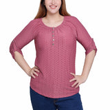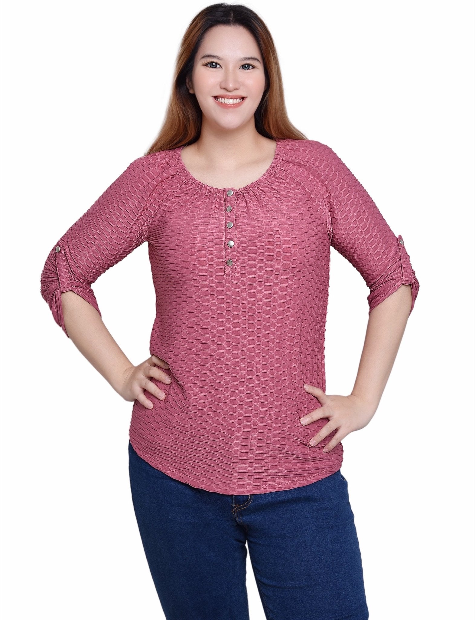 It's a classic easy-to-wear henley with an updated honeycomb fabric.