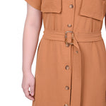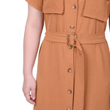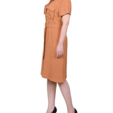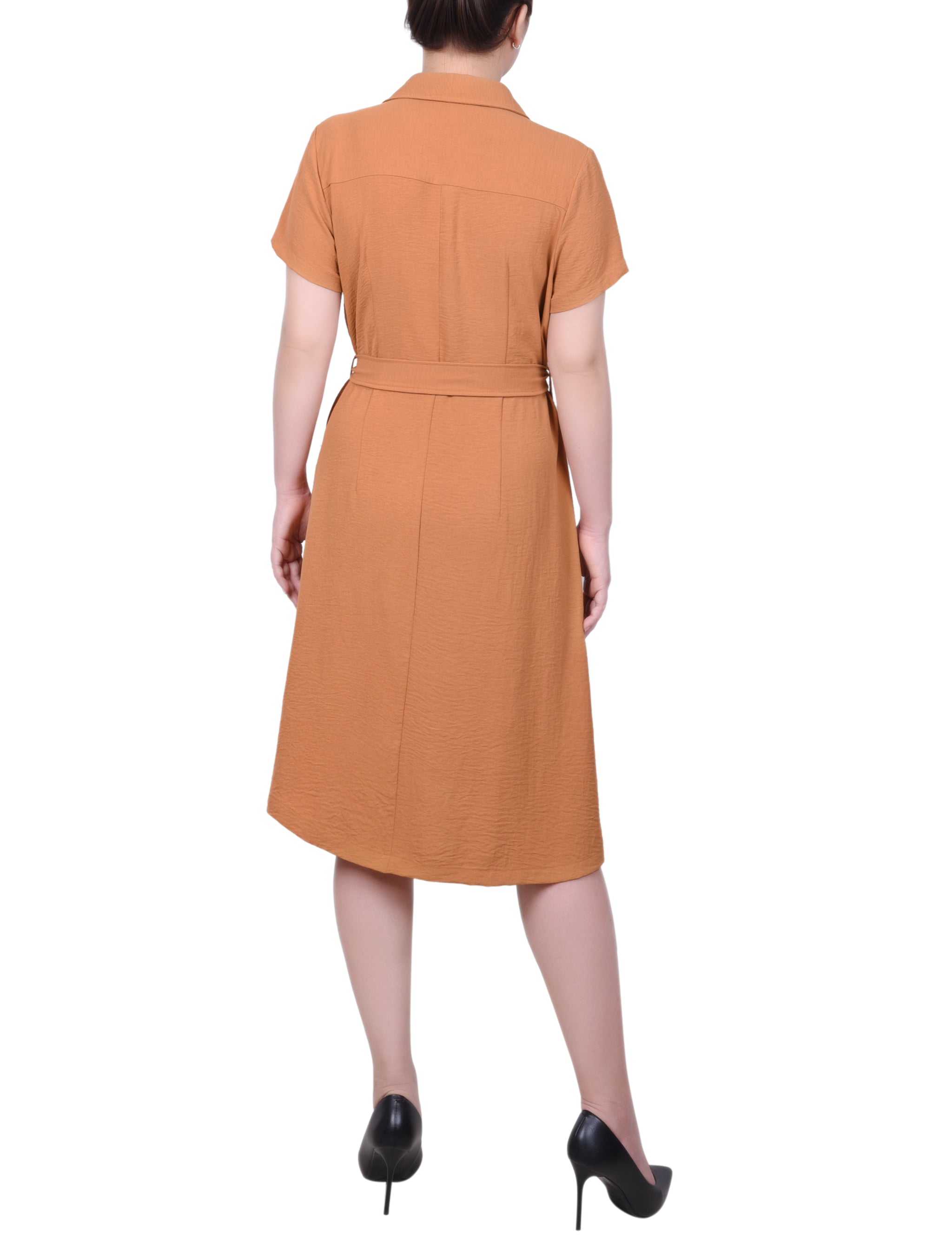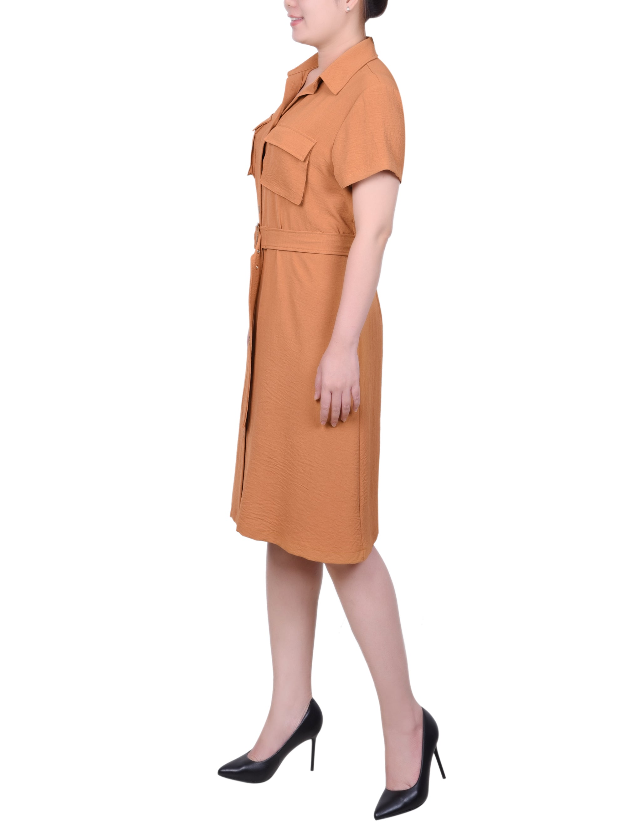 This A-line shirtdress is crafted with a belt for a flattering finish. It features short sleeves and timeless style, making it a versatile addition to your wardrobe.