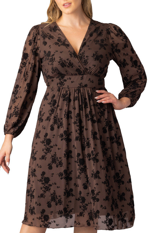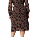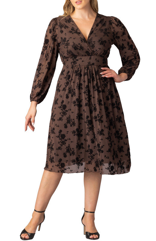 Romantic and refined, the Melanie Mesh Midi Cocktail Dress is a beautifully flattering choice for every special occasions. Crafted from soft flocked mesh with velvet-like floral detailing, this semi-formal plus size style features long blouson sleeves, a surplice V-neckline, and a curve-enhancing waistband for comfort and shape.