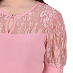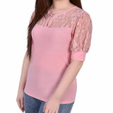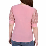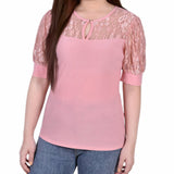 You'll love how you look in this unique top with it's lace yoke and puff sleeves.