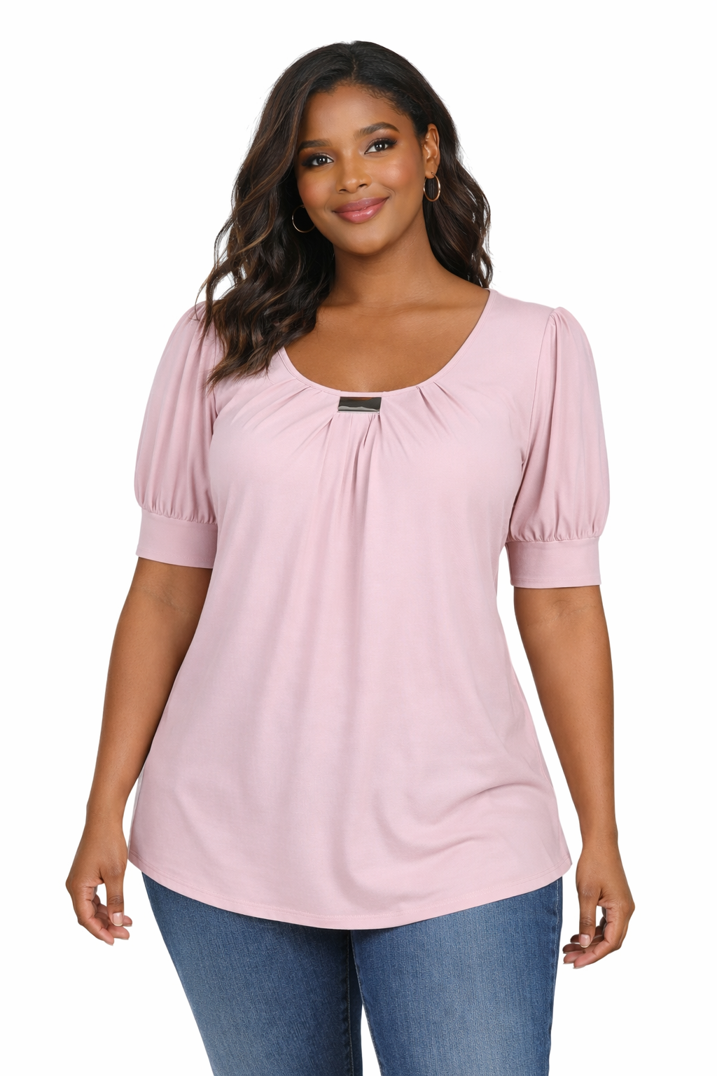 Mellow Rose Short Sleeve Balloon Sleeve Top With Hardware