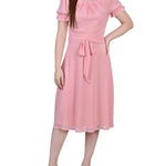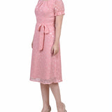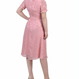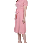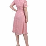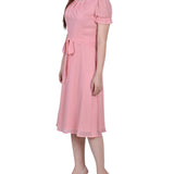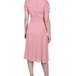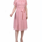 Mellow Rose Short Sleeve Belted Swiss Dot Dress - Petite