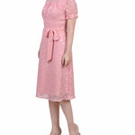 Mellow Rose Short Sleeve Belted Swiss Dot Dress - Petite – Dressbarn