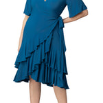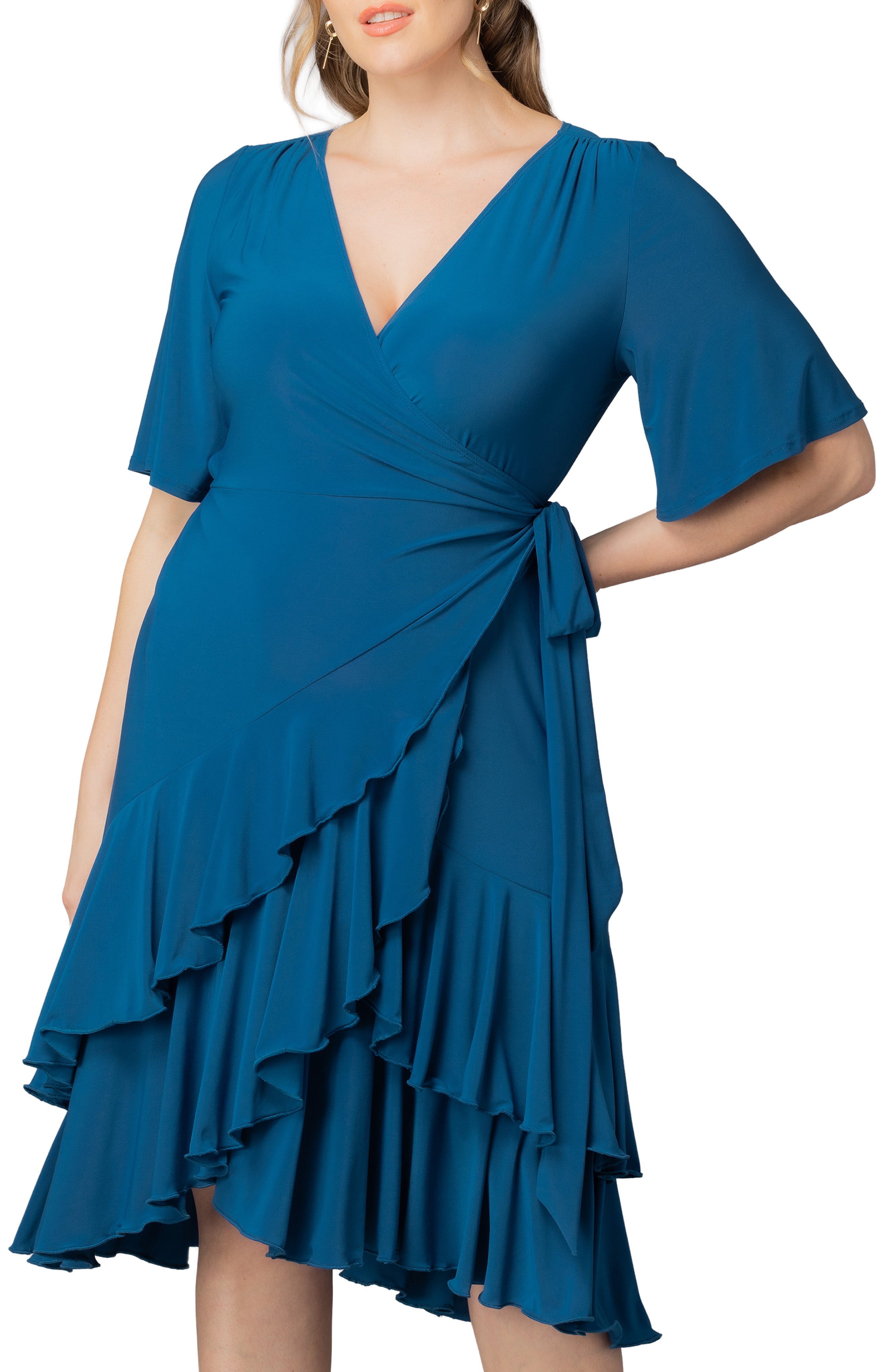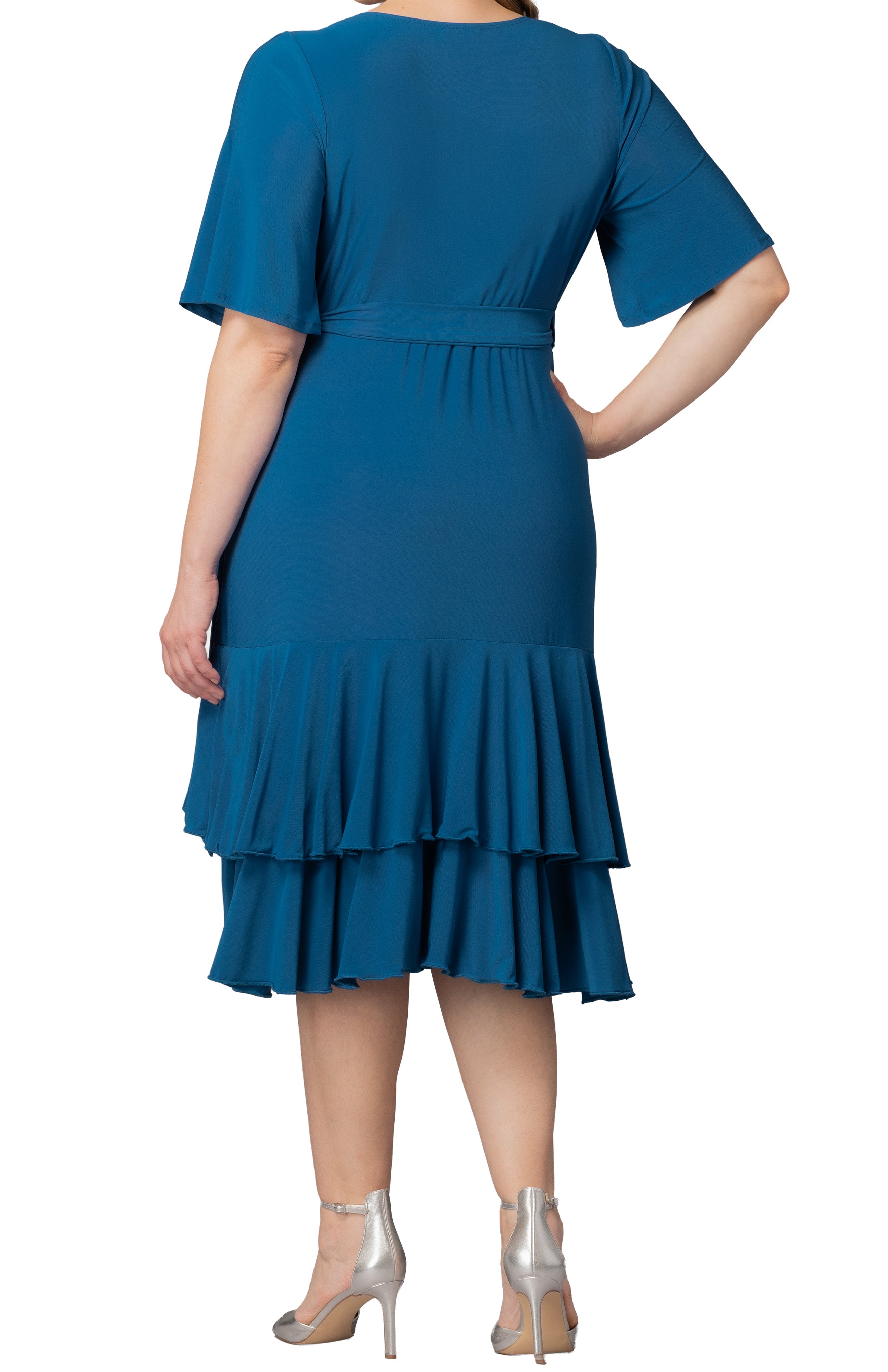 Flirty and fun, the Miranda Ruffle Wrap Dress features a true wrap, flutter sleeves, and a double flounce detailing at the hem of the skirt. A perfect cocktail dress for special occasions, parties, and for the best dressed wedding guest or mother of the bride / groom. Also available in plus sizes.